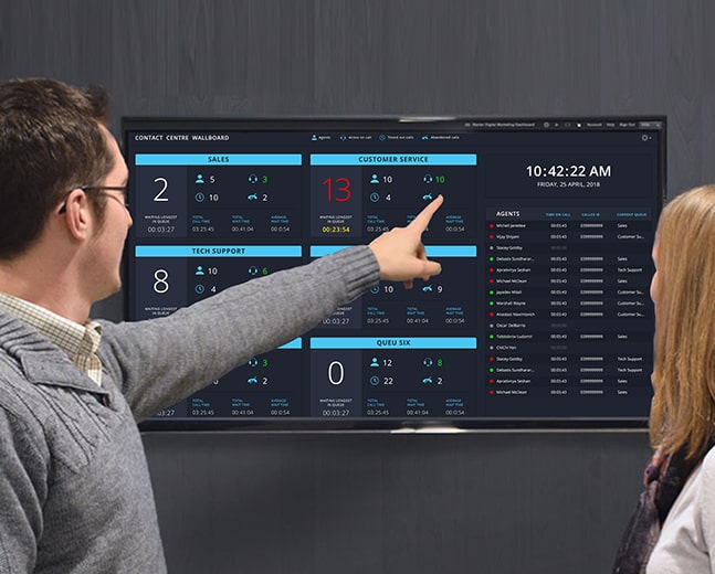 - Our queue wallboard will give your agents live information about call loads and will allow them to adjust their time spent on call.