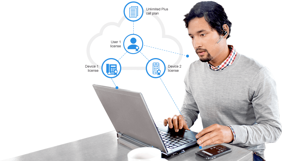 Our pricing structure is based on the number of people using a hosted phone system. The User License allows you to create a ‘user object’ in the call flow. The User object can then be linked to one or more SIP Devices and to the selected call plan.